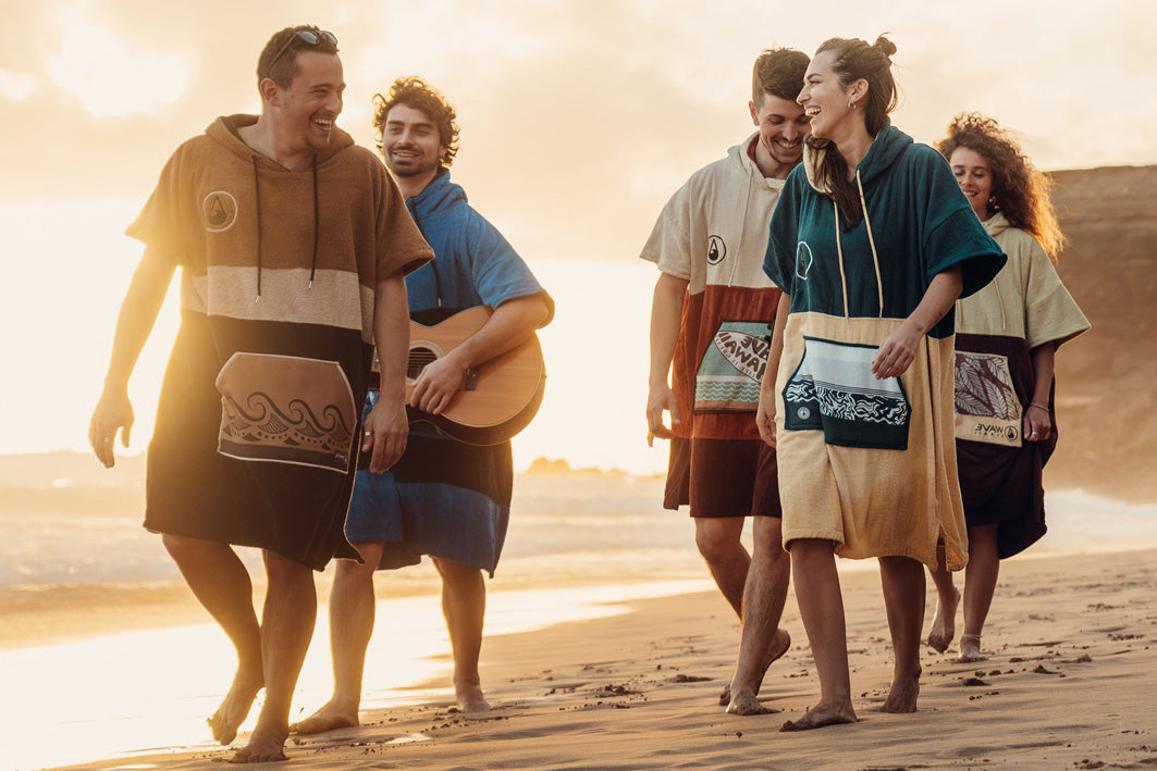 Fluffy, sustainable ponchos made from natural fabrics – free of microfibers and plastic. Perfect after showering, exercising, swimming, spas, water sports, camping, saunas, or the gym. Our surf ponchos keep you dry, warm, and protect your privacy. Discover comfort and environmental awareness in one.